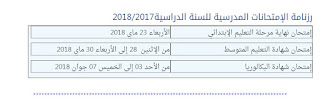 رزنامة الامتحانات الرسمية للسنة الدراسية 2018/2017 شهادة التعليم الابتدائي ـ شهادة التعليم المتوسط ـ البكالوريا رابط مباشر من موقع الوزارة